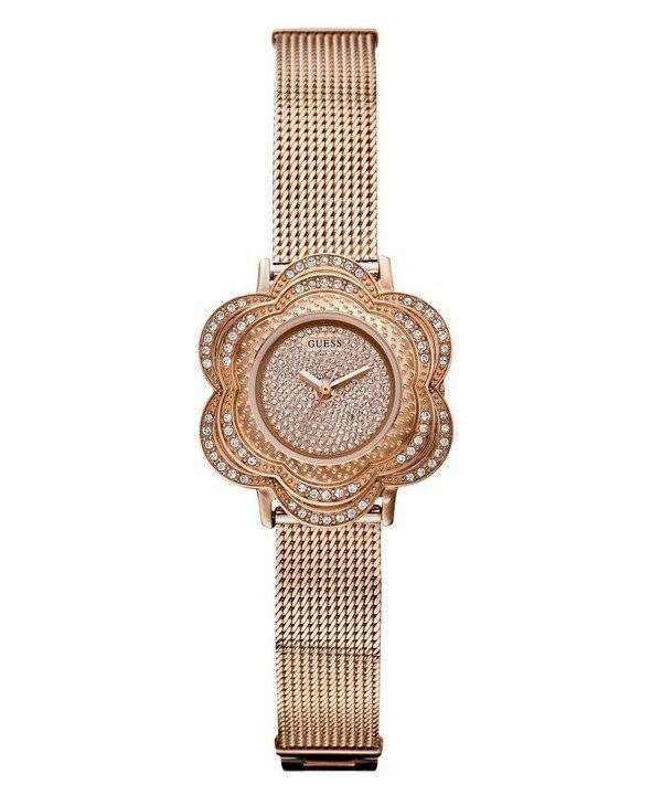 로즈 골드 톤 꽃 무늬 메쉬 U0139L3 여성용 시계