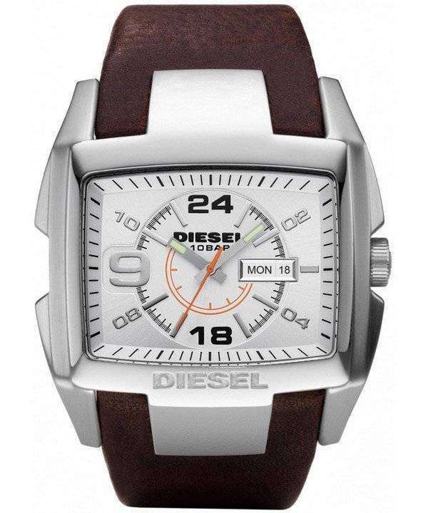 디젤 Bugout 실버 다이얼 갈색 가죽 WR100M DZ1273 남자의 시계