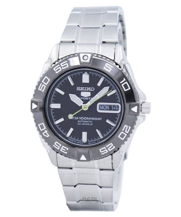 재생품 세이코 5 스포츠 스테인리스 스틸 블랙 다이얼 자동 SNZG13 SNZG13J1 SNZG13J 100M 남성용 시계