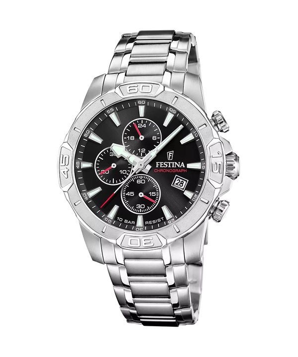 Festina Timeless 크로노그래프 스테인리스 스틸 블랙 다이얼 쿼츠 F20704-3 100M 남성용 시계
